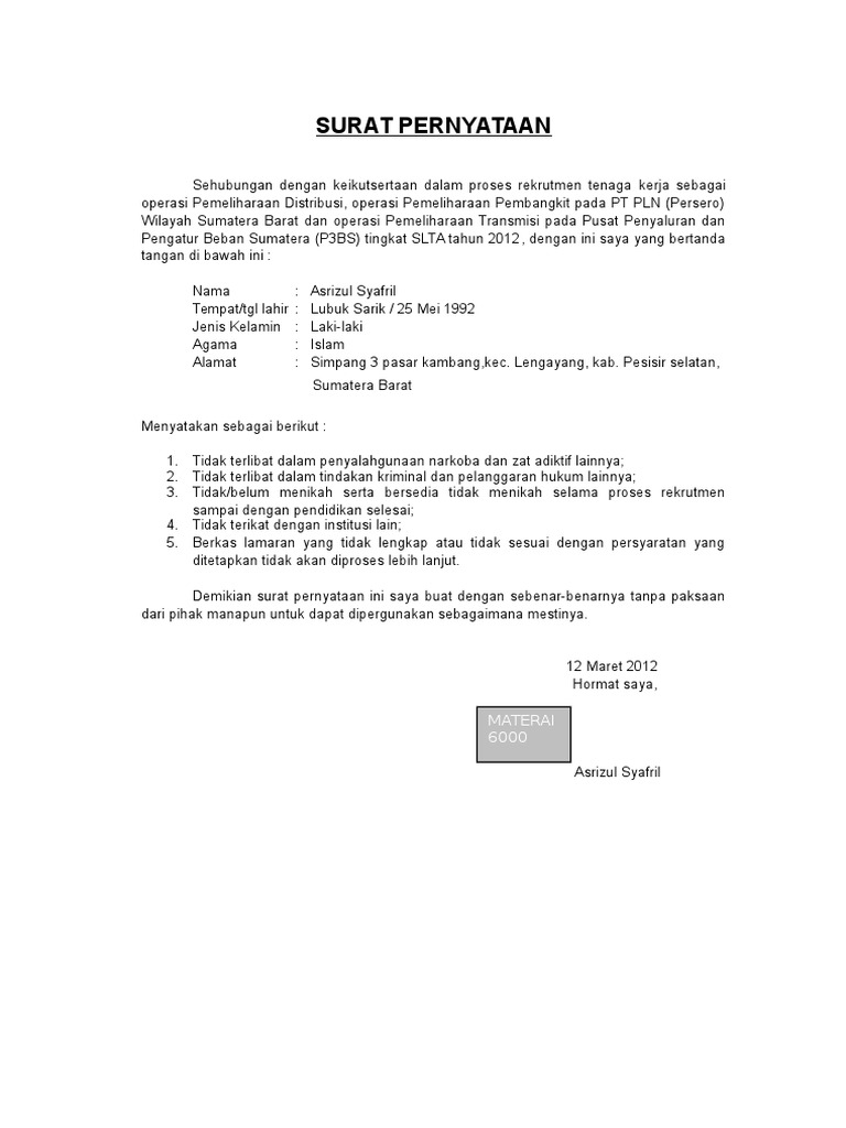6 Contoh Surat Pernyataan Diri Lengkap Berbagai Keperluan …
