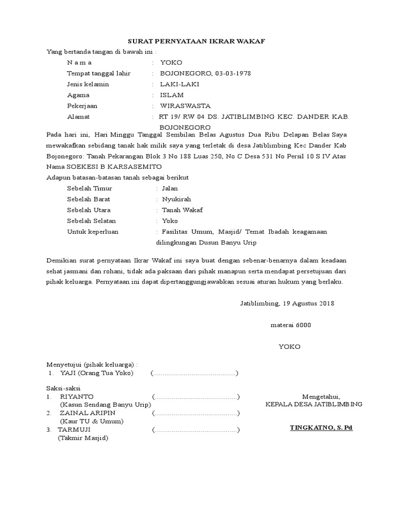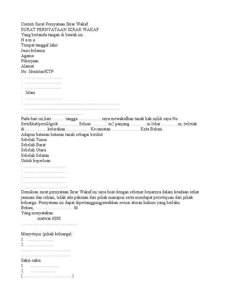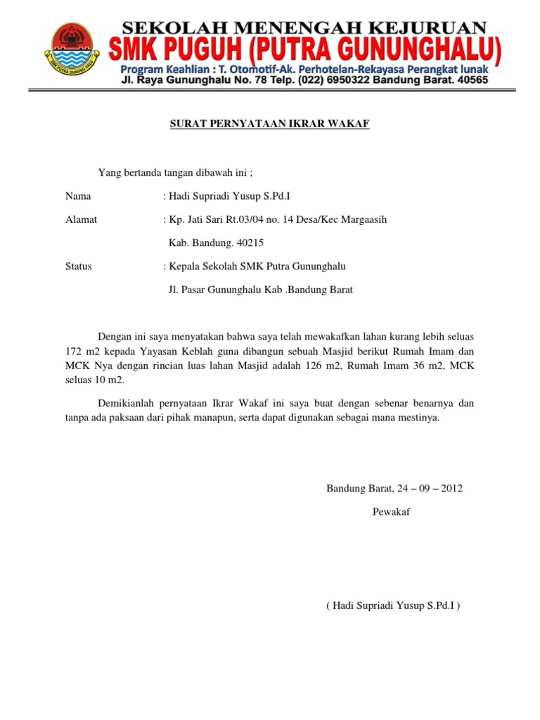 Contoh Surat Pernyataan Wakaf - Gawe CV