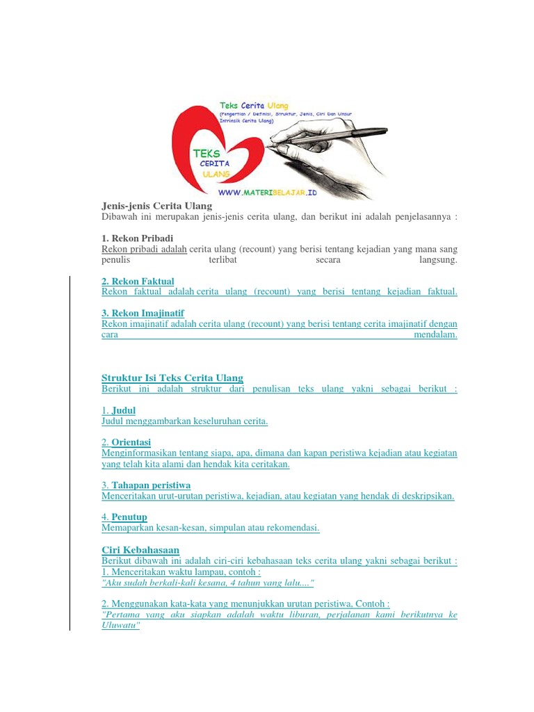 Teks Cerita Ulang : Pengertian, Ciri, Struktur, Kaidah & Jenis
