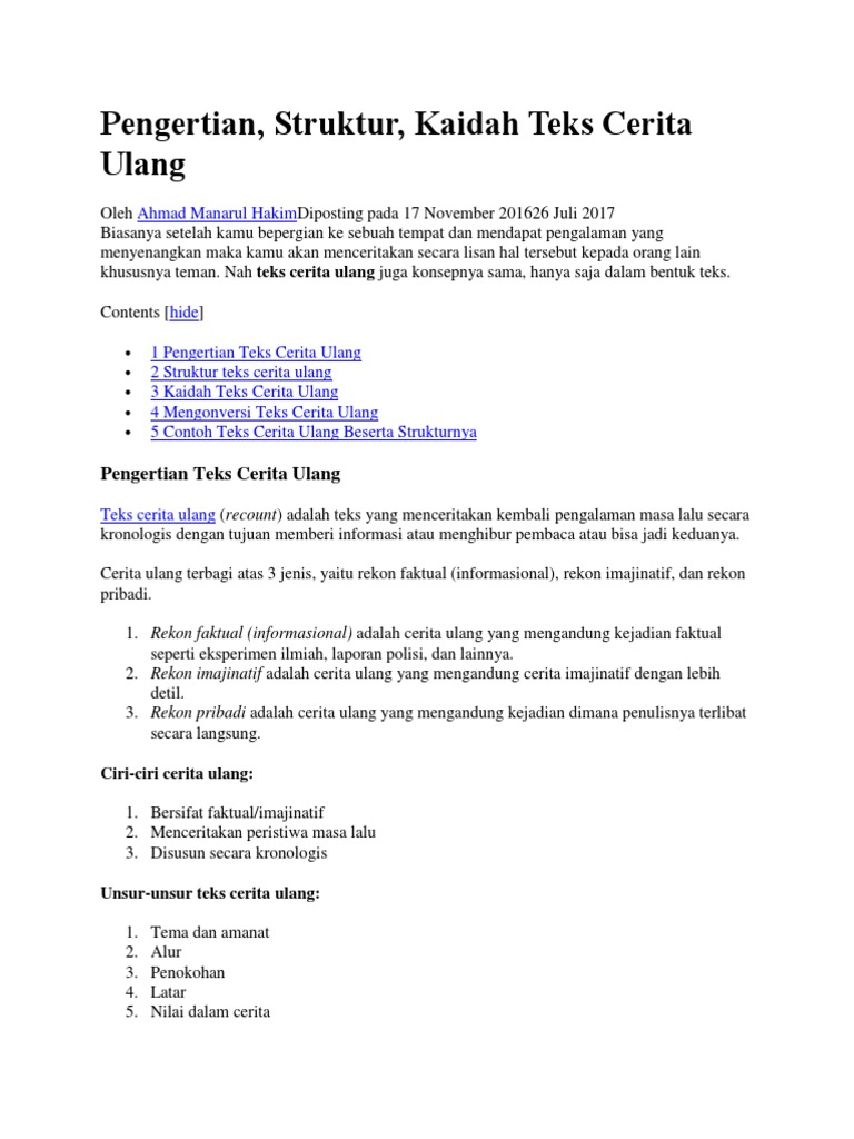 Contoh Teks Cerita Ulang Rekon Faktual - Berbagai Teks Penting