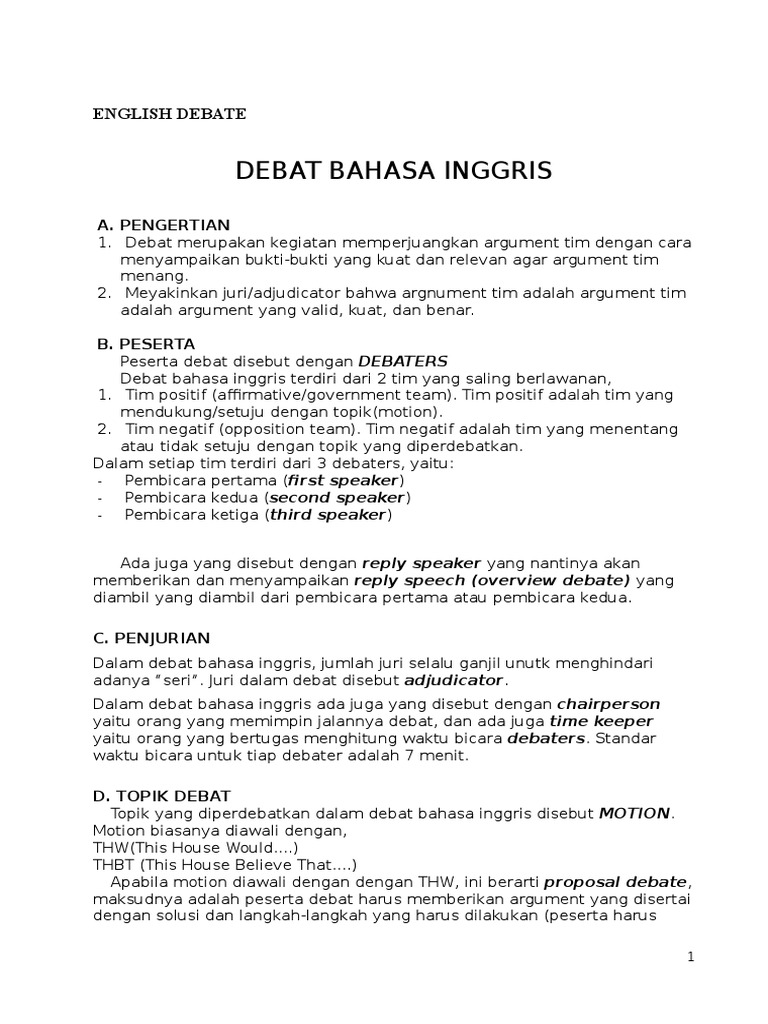 Contoh Teks Debat Bahasa Inggris Dan Terjemahannya - Berbagai …