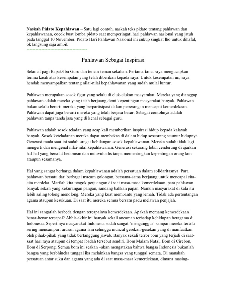 Contoh naskah pidato tentang hari pahlawan download