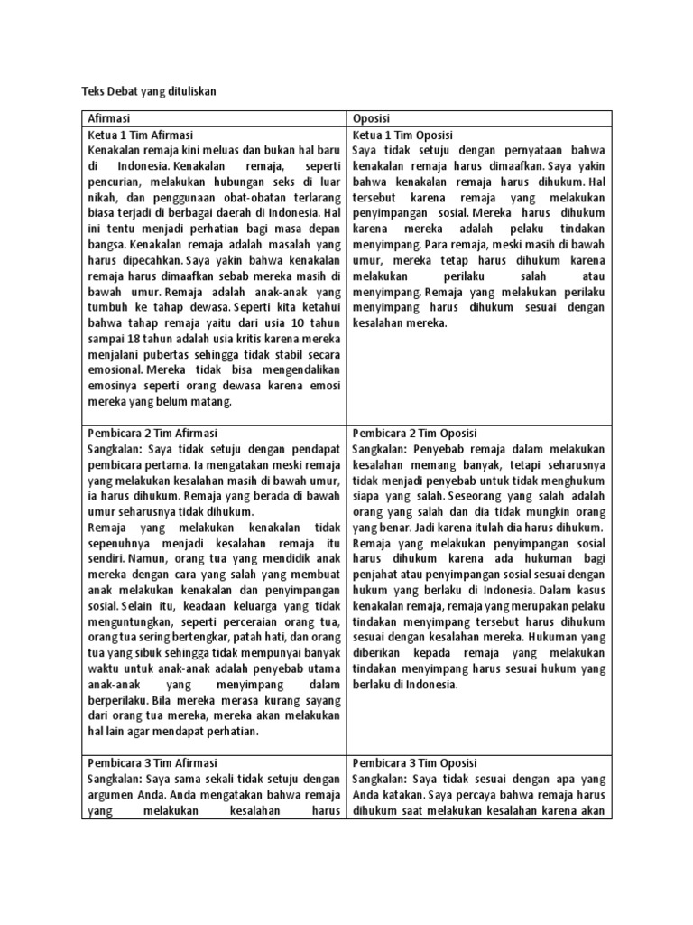 Contoh Teks Debat Pro Dan Kontra Tentang Kenakalan Remaja …