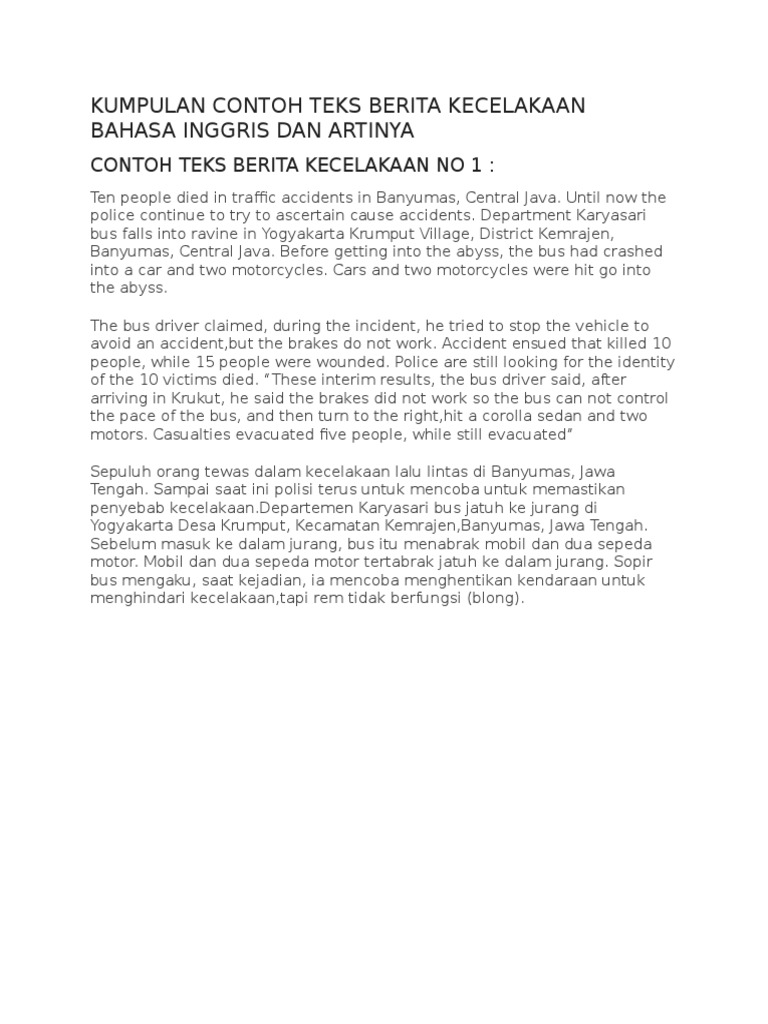 Contoh Berita Singkat Dalam Bahasa Inggris Dan Terjemahnya - Abimuda