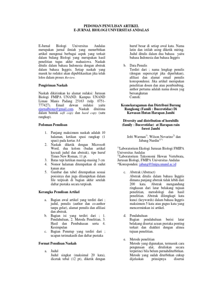 PEDOMAN PENULISAN ARTIKEL UNAND