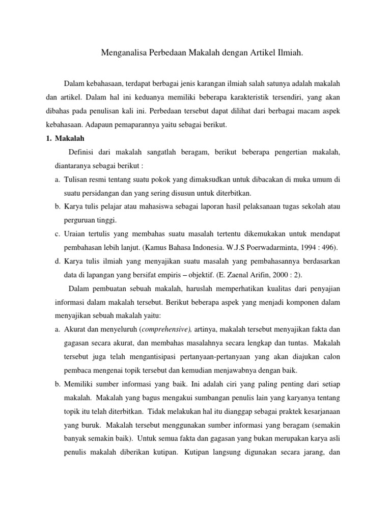 Menganalisa Perbedaan Makalah Dengan Artikel Ilmiah