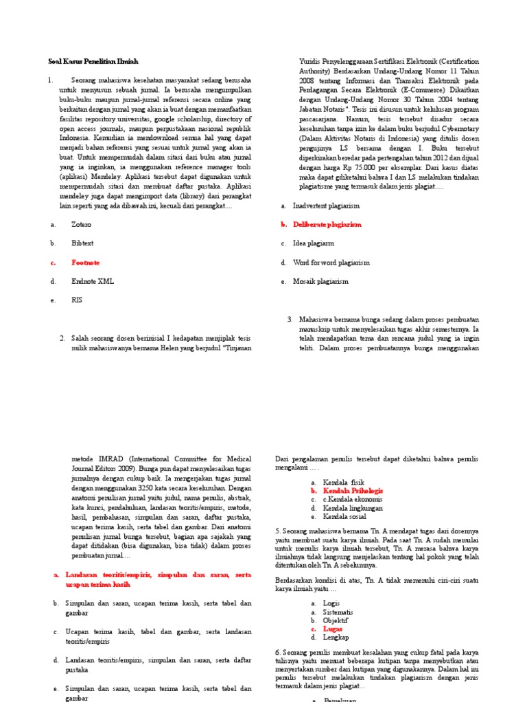 Soal Kasus Penelitian Ilmiah