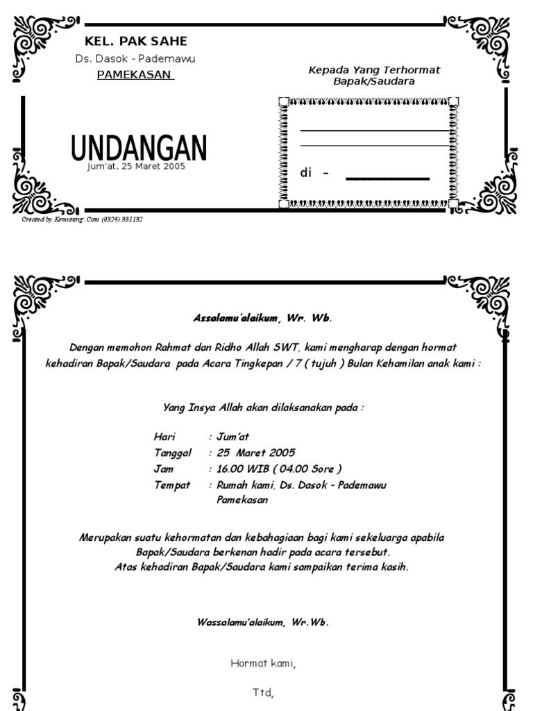 Walimatul Hamli Format Undangan 7 Bulanan Kehamilan Doc - Bagikan …