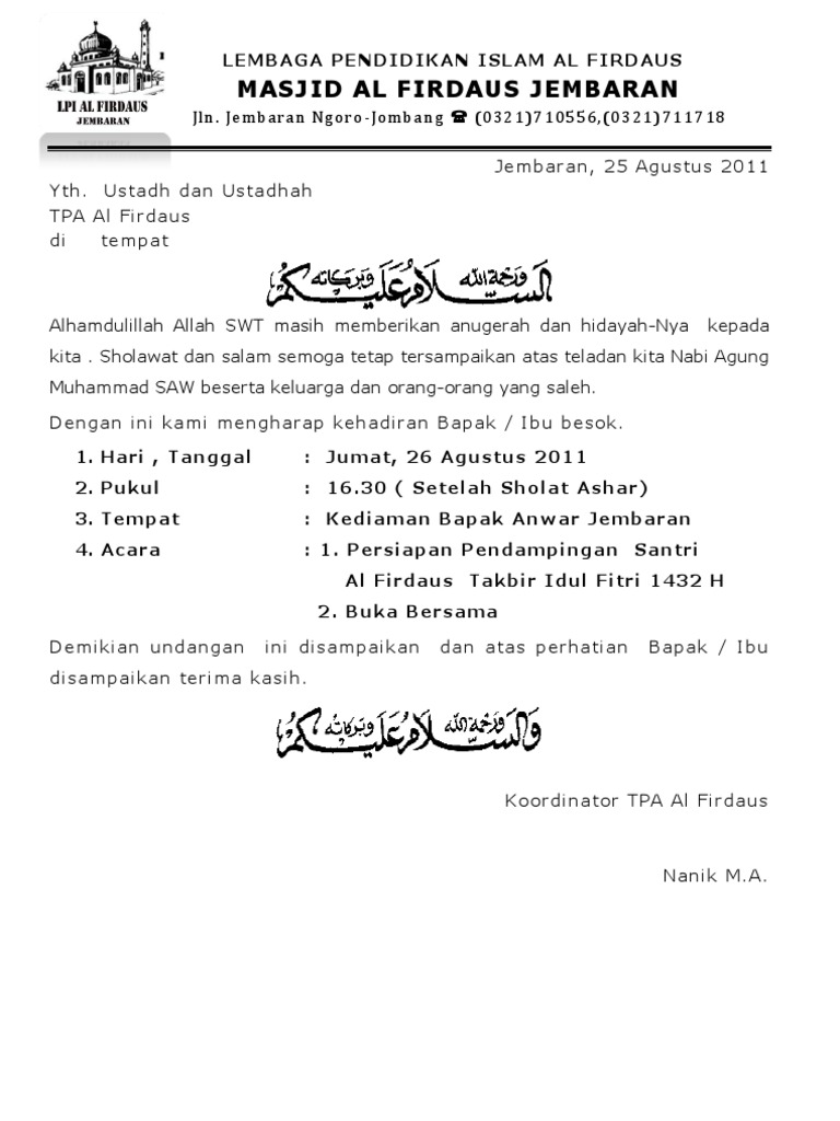 Contoh Surat Undangan Buka Puasa Bersama | Folder Contoh Surat
