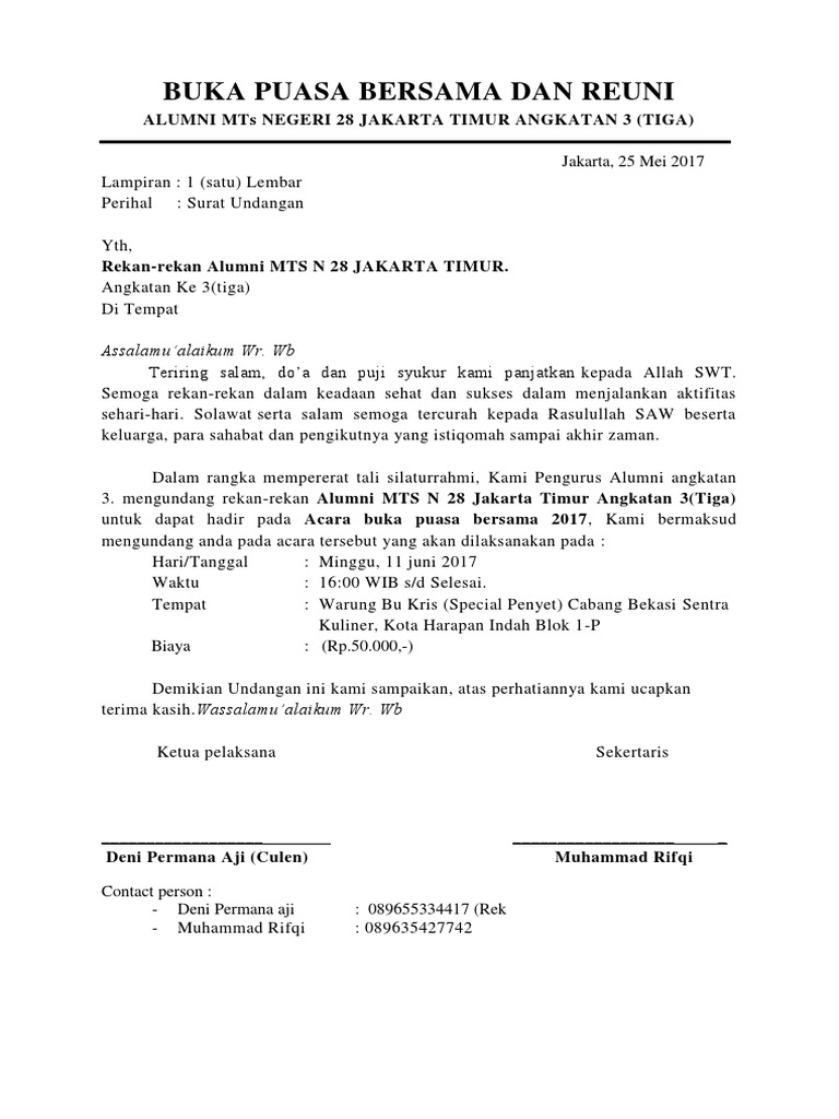 Kumpulan Contoh Surat Undangan Buka Bersama Untuk Alumni Terbaru …