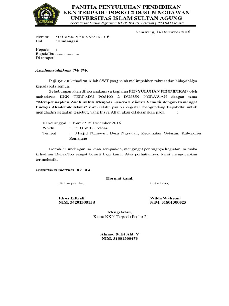 Surat Undangan Acara | KKN PSIK-7 Kelompok 4