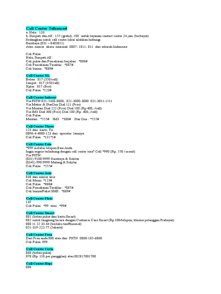 Call Center Telkomsel - XL - Smartfren - Indosat- Tri | Jalantikus