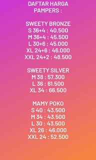 Daftar Harga Popok Bayi SWEETY | DINA SWALAYAN SUMENEP