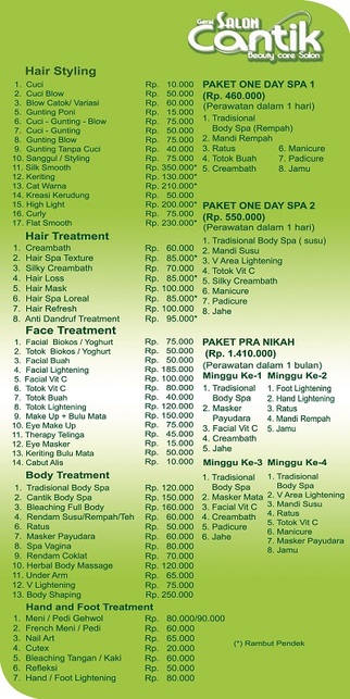 HOSINI SALON KECANTIKAN DAFTAR HARGA PELAYANAN - AHOK INDONESIA …