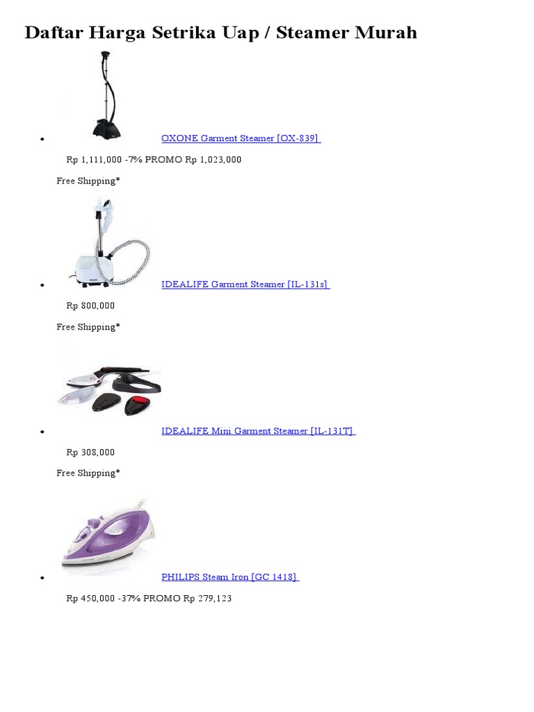 Daftar Harga Setrika Uap / Steamer Murah: Rp 1,111,000 -7% PROMO Rp 1,023,000 Free Shipping
