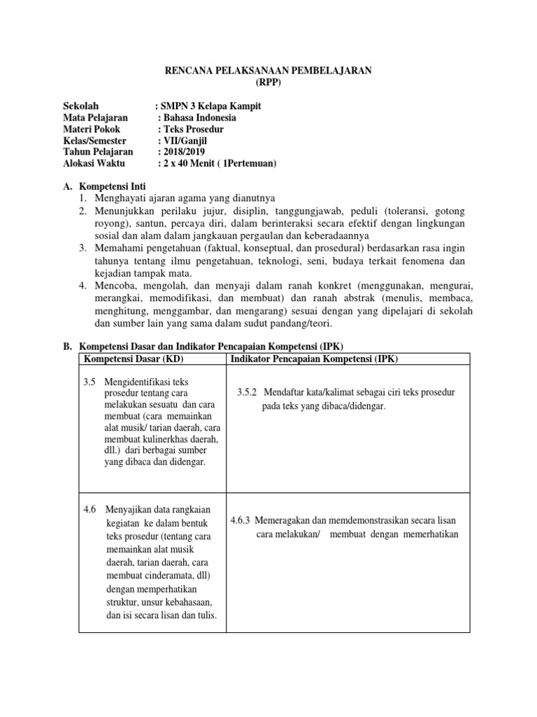 DOC) RPP BAHASA INDONESIA KELAS VII BAB 3 TEKS PROSEDUR.docx …