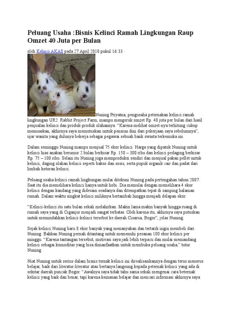 Peluang Usaha Kelinci Hias