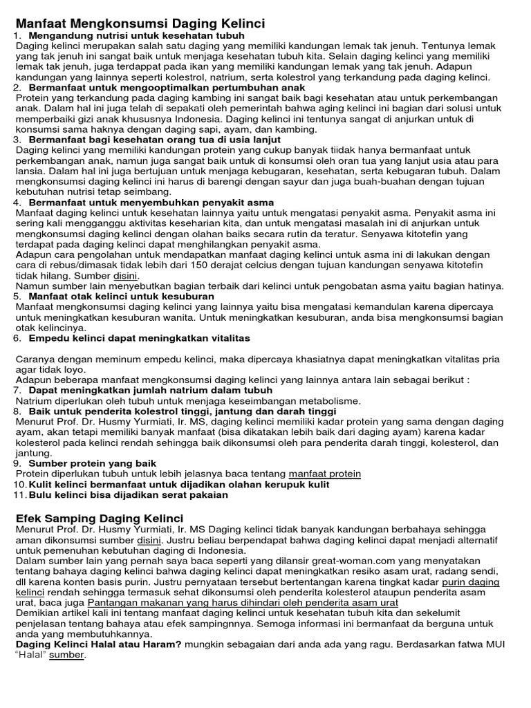 15 Manfaat dan Khasiat Daging Kelinci Untuk Kesehatan bisa Mencegah Kemandulan - Rumah Kelinci Kudus