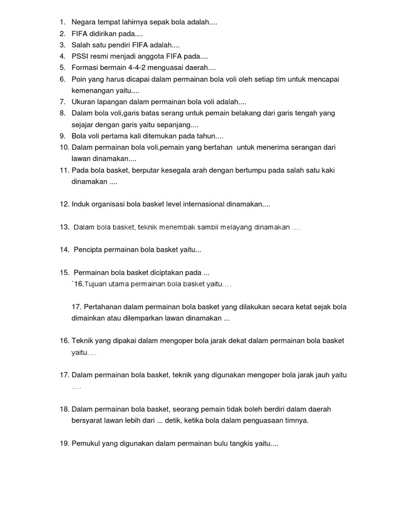 Soal Penjaskes Bab Bola Basket (Pilgan - Essay) & Jawaban …