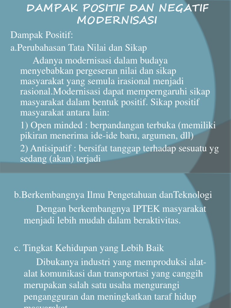 Ilmu Pengetahuan Sosial: Dampak Positif dan Negatif Modernisasi …