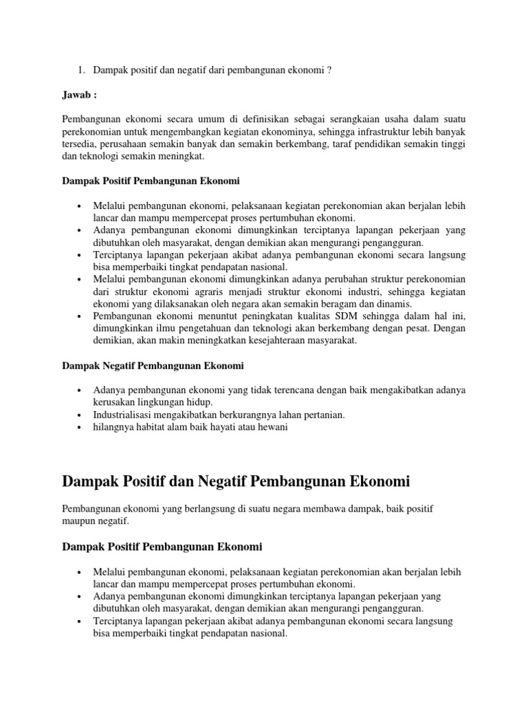 Sebutkan Dampak Positif Pembangunan Ekonomi Bagi Masyarakat …