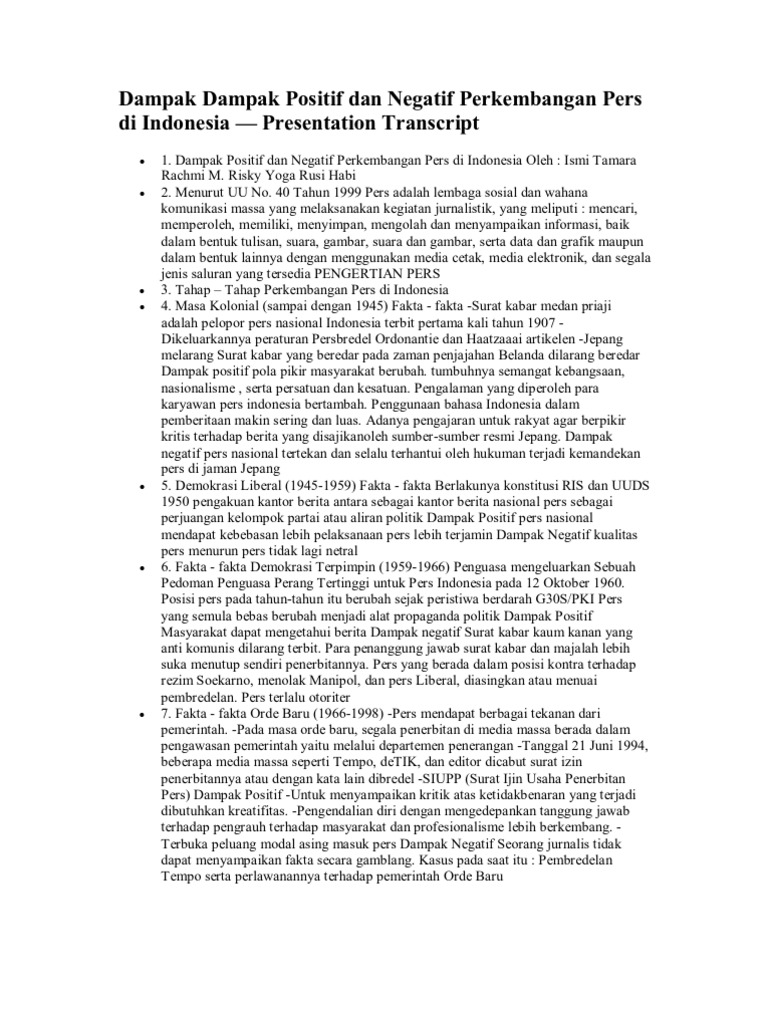 Dampak Dampak Positif Dan Negatif an Pers Di Indonesia