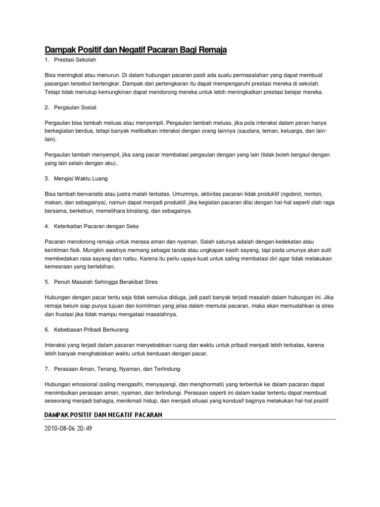 DOC) Dampak Positif dan Negatif Pacaran Bagi Remaja | Habieb …