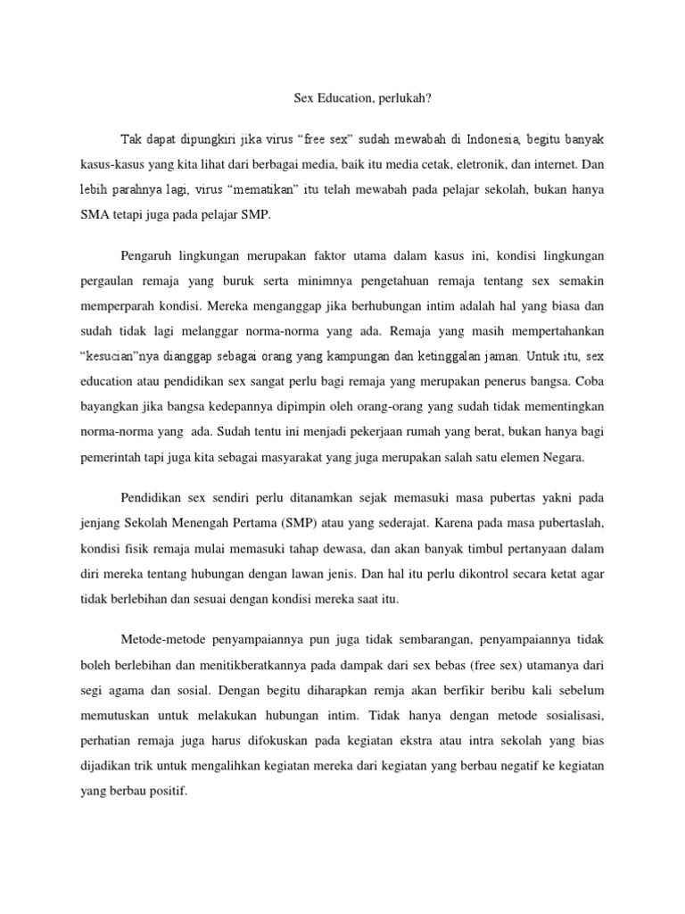 Dampak positif dan negatif belajar tentang pendidikan seks (min 3 …