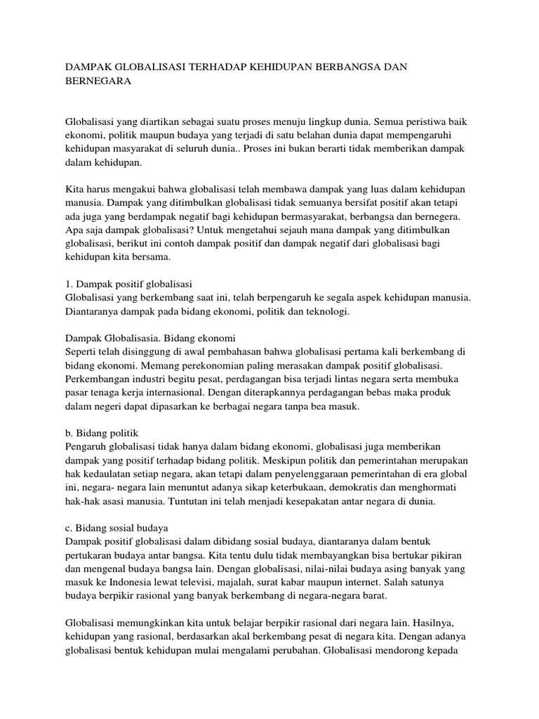 Dampak Positif Dan Negatif Globalisasi Di Berbagai Bidang …
