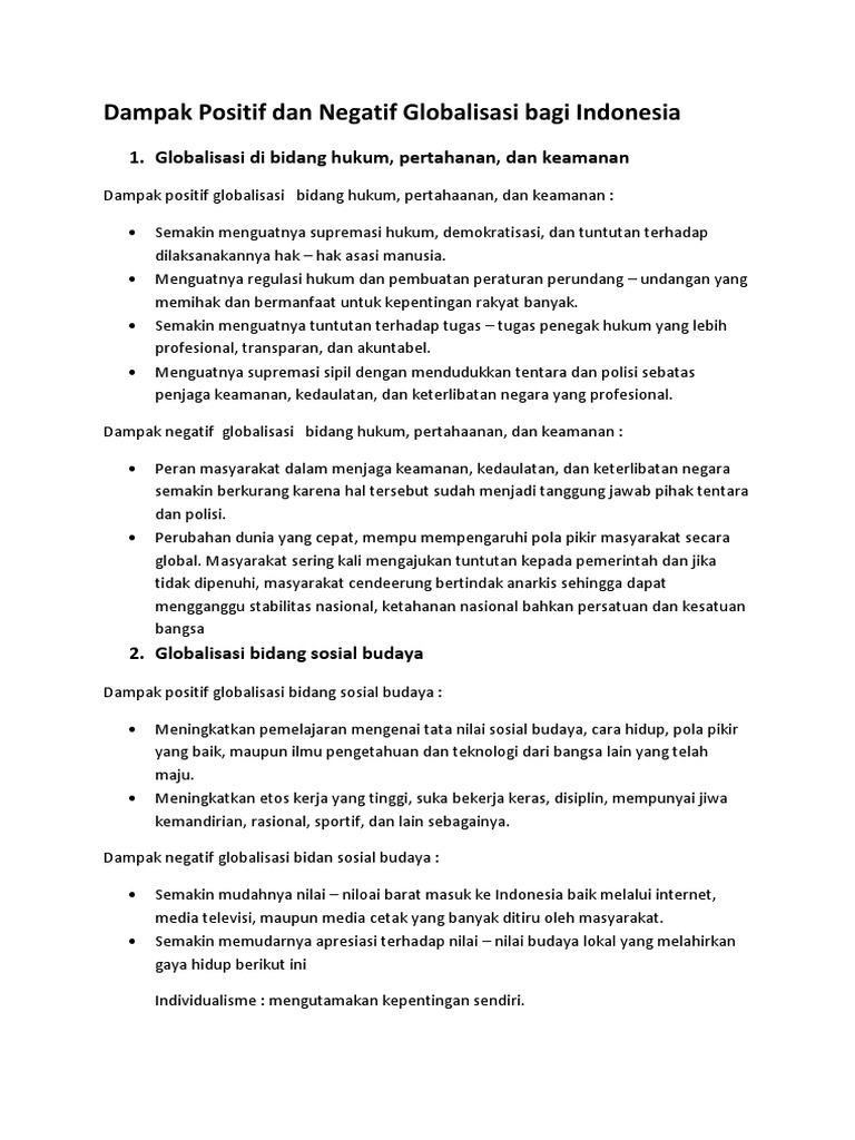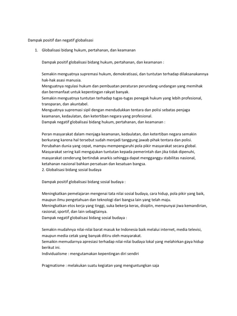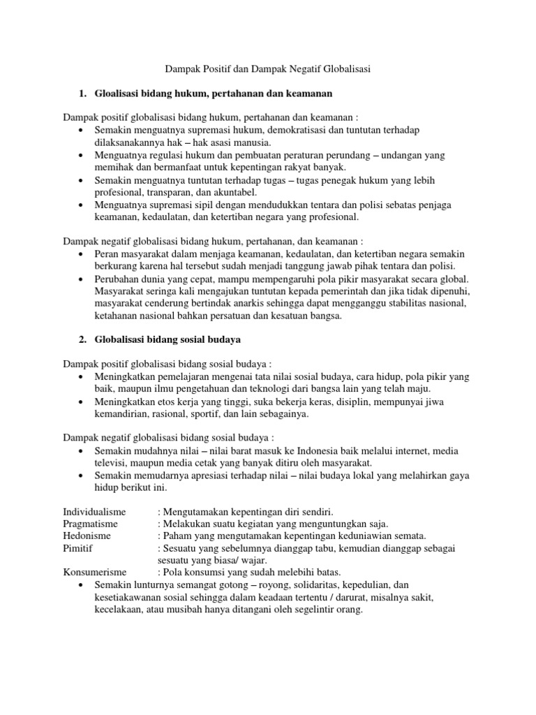 Dampak Positif & Negatif Globalisasi di Berbagai Bidang - Tugas …