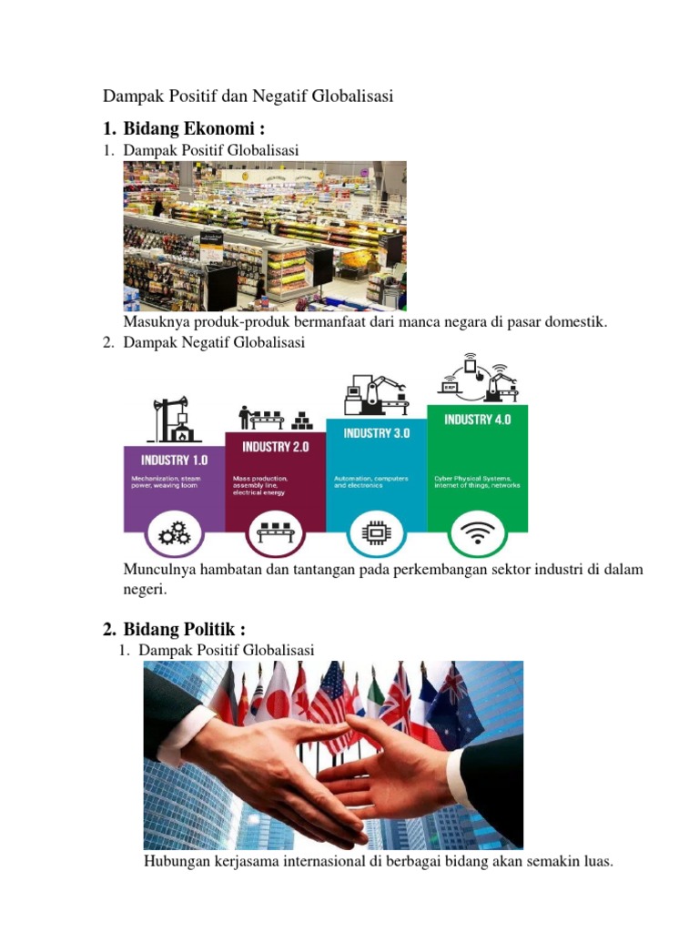 1. Bidang Ekonomi:: Dampak Positif dan Negatif Globalisasi