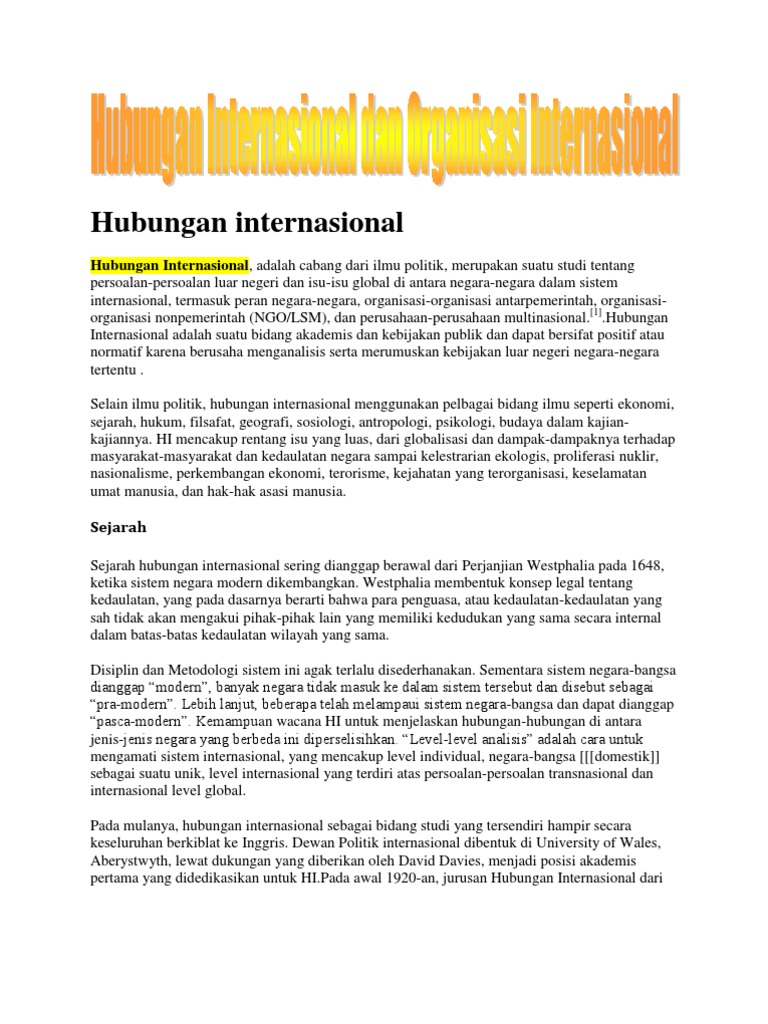 Pengertian Hubungan Internasional Politik Internasional dan …