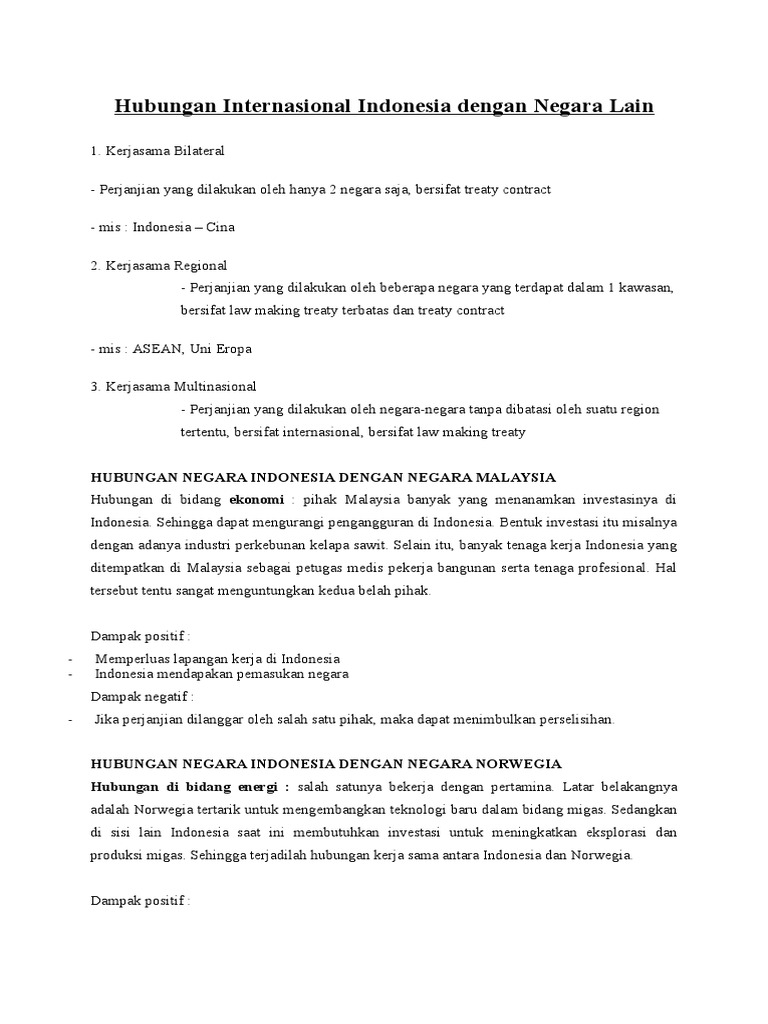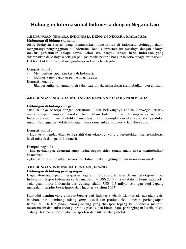 Hubungan Internasional Indonesia Dengan Negara Lain