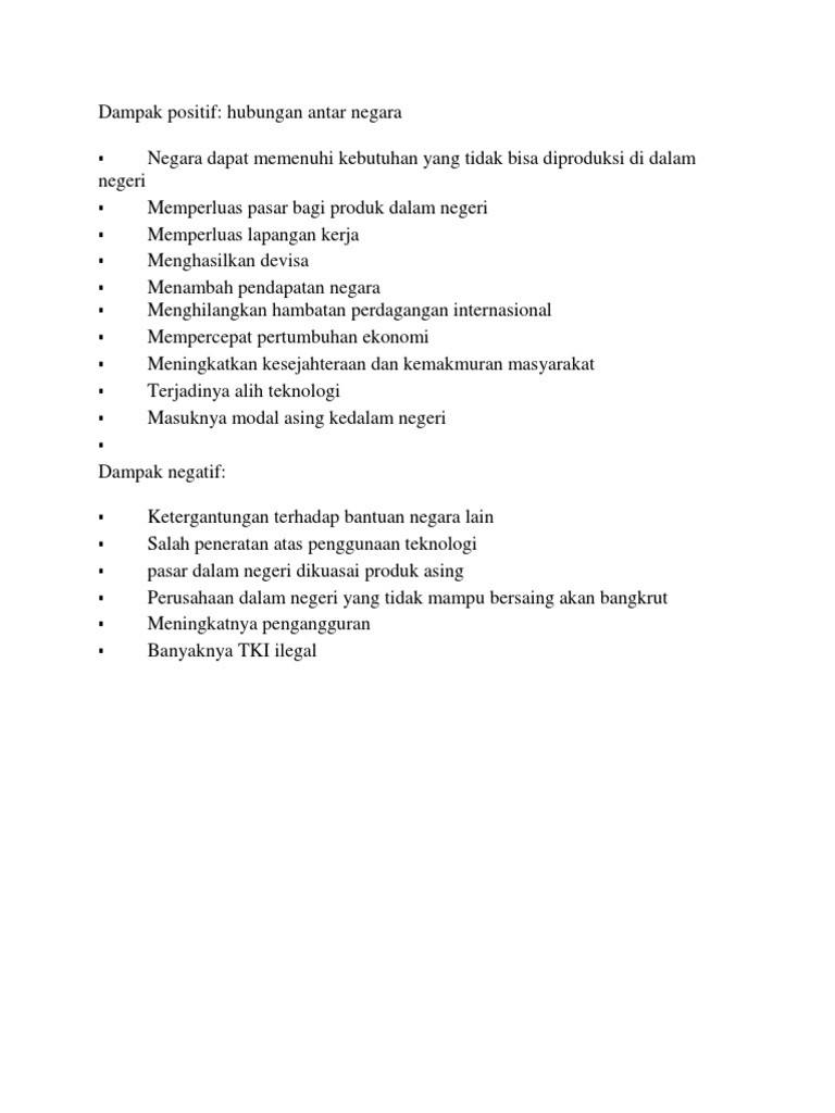 Dampak Negatif Dan Positif Hubungan Antar Negara