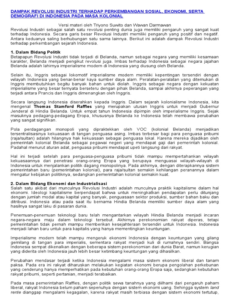Akibat Timbulnya Revolusi Industri (Bidang Ekonomi, Sosial dan …