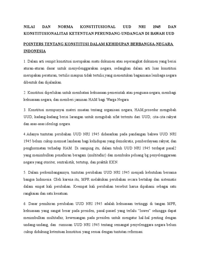 Rangkuman tentang Konstitusi dalam Kehidupan Berbangsa Negara …