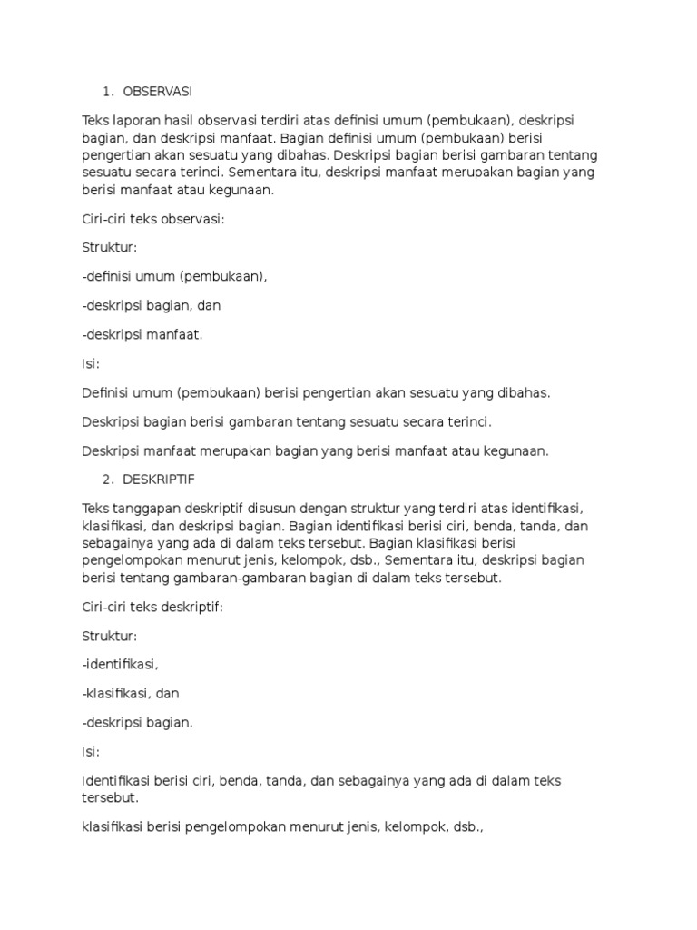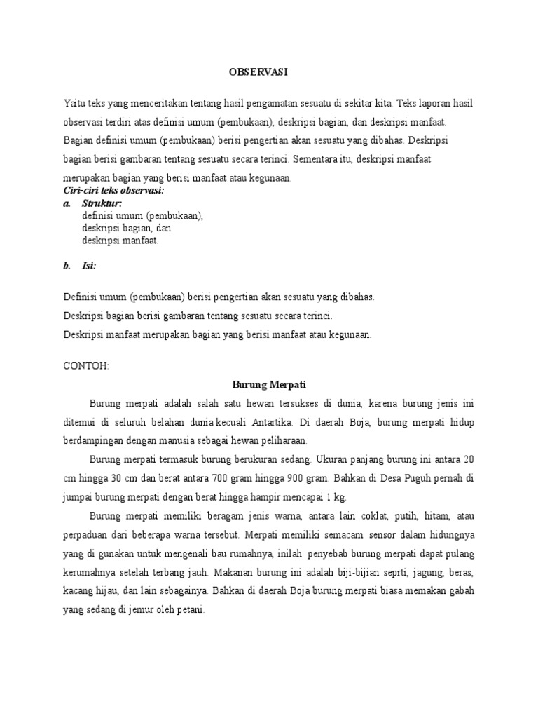 DOC) Definisi, Ciri-ciri Penjelasan Teks Observasi | Rama Candra …