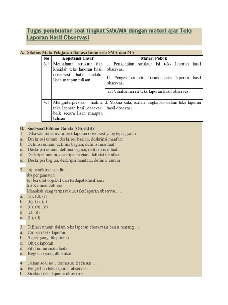 Contoh Teks Laporan Hasil Observasi Tentang Lingkungan Sekolah …