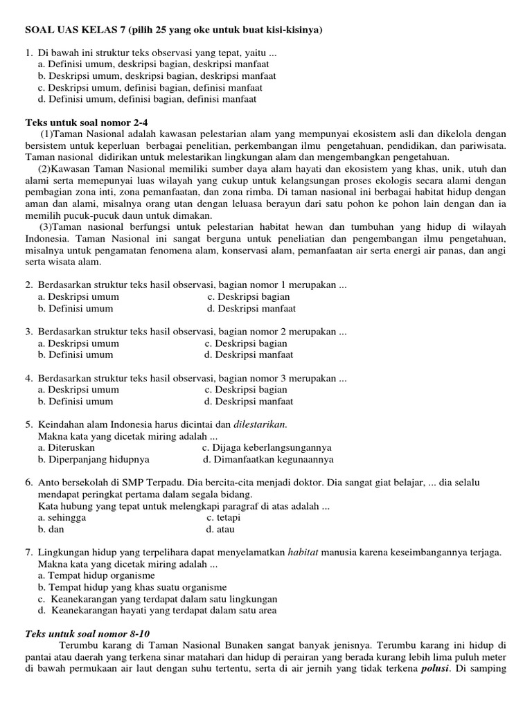Dunia Belajar 3: Soal Uas Bahasa Indonesia Kelas 7 Semester 1 …