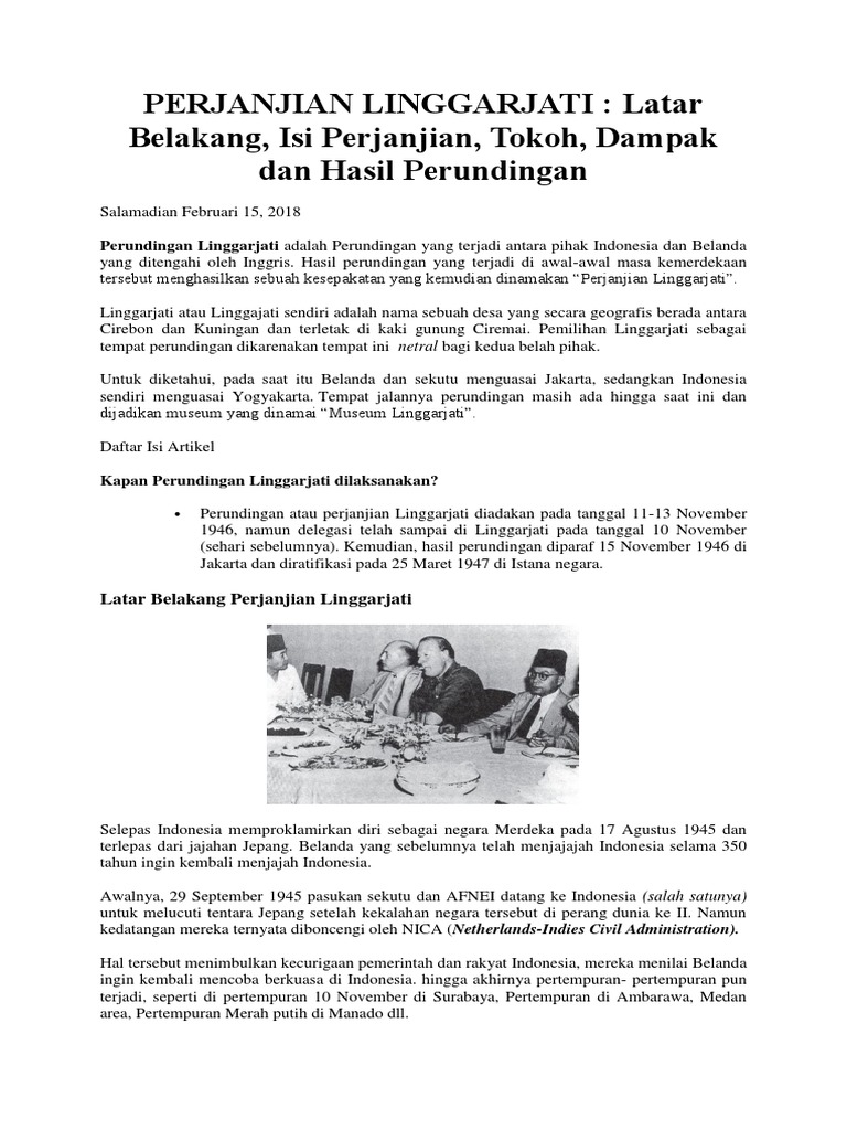 SEJARAH: Perjanjian Linggarjati (Peristiwa Sebelum Terjadinya Perjanjian Linggarjati atau Perundingan Linggarjati, Pelaksanaan Perundingan Linggarjati, Tokoh-tokoh yang Terlibat dalam Perjanjian Linggarjati, Negara-negara yang Terlibat dalam Perjanjian …