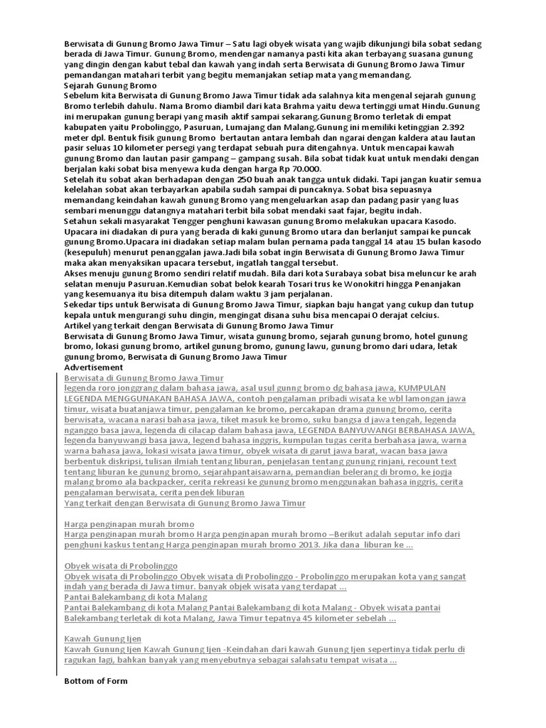 Deskripsi Tempat Wisata Di Jawa Timur Dalam Bahasa Inggris