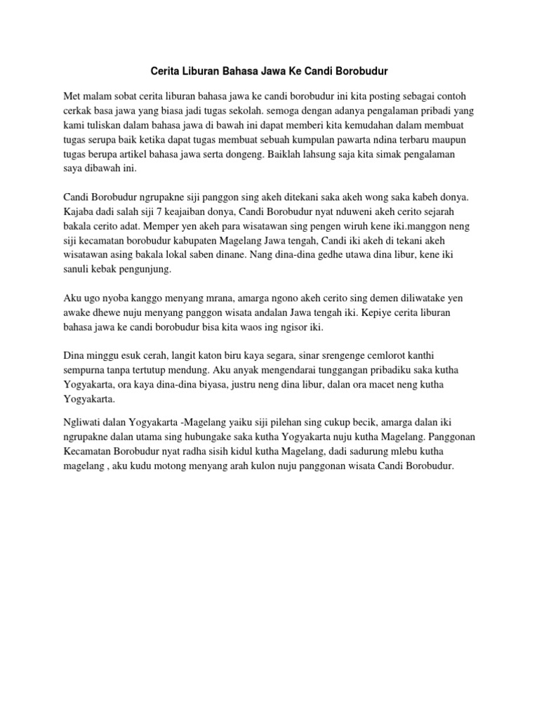 Mau Contoh Cerita Liburan Ke Candi Borobudur Dalam Bahasa Jawa …