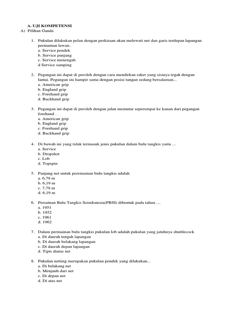 Soal materi bulu tangkis kelas 91. Di bawah ini yang tidak …