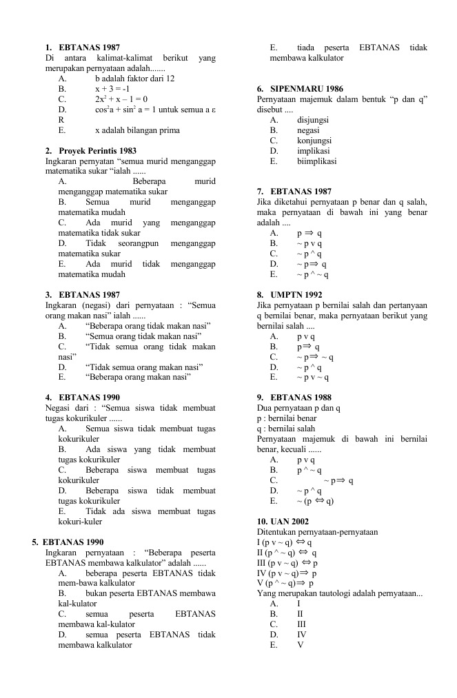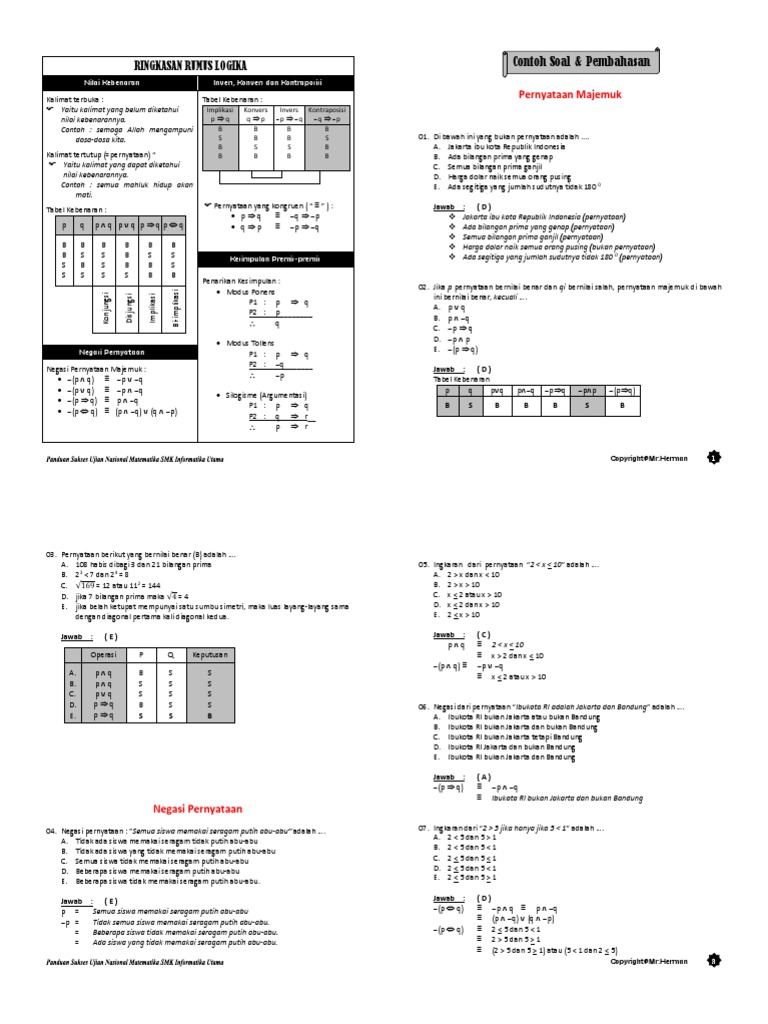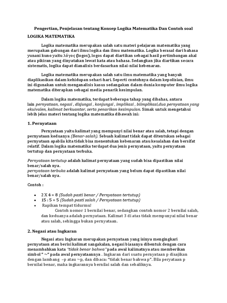 DOC) Contoh Soal Latihan Logika Matematika dan Pembahasan Lengkap …