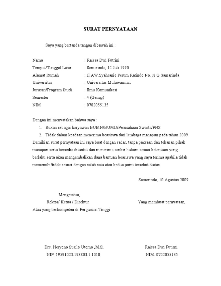 18+ Contoh Surat Pernyataan Benar Benar Bukan Pns