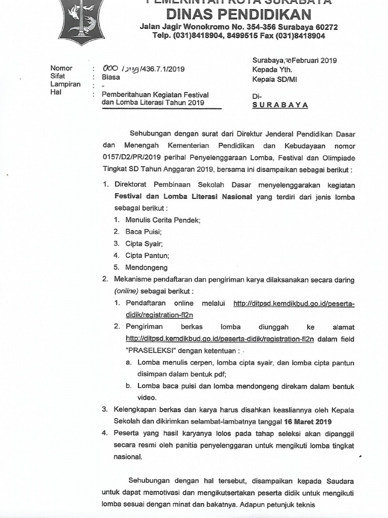 Petunjuk Pelaksanaan FL2N SD 2019 Festival Lomba Literasi Nasional …