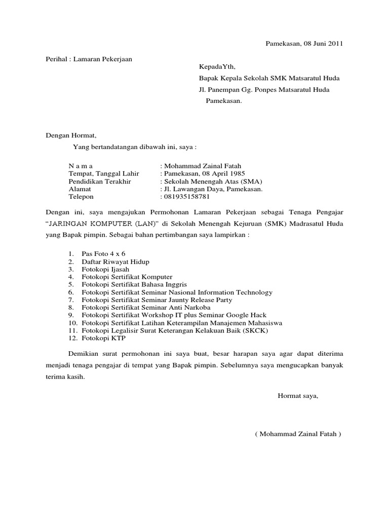Surat Lamaran Kerja : Pengertian, Unsur, Struktur, Jenis, Fungsi …