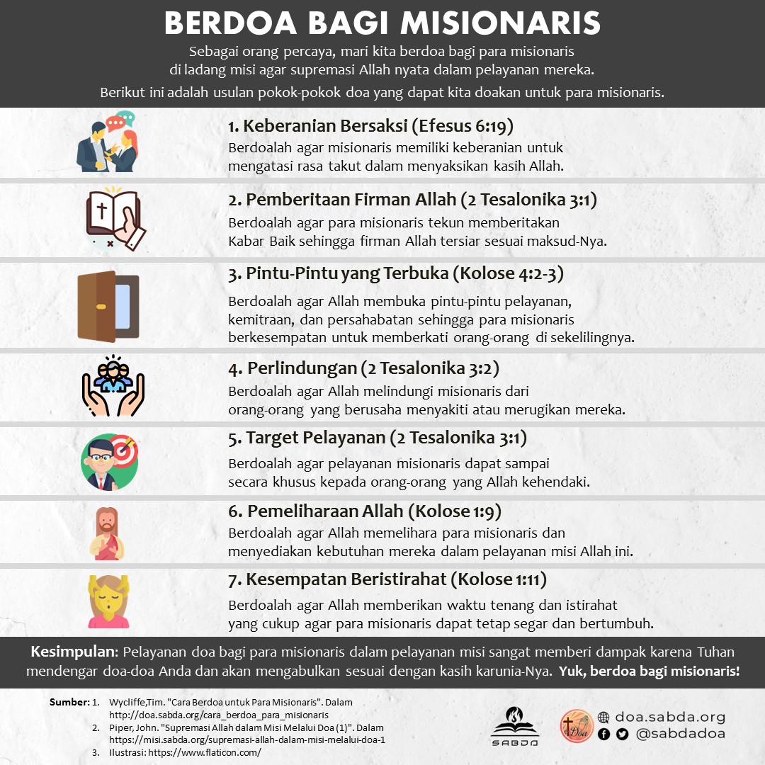 SABDA e-Doa ar Twitter: “Apakah Sahabat Doa sudah mengambil waktu untuk berdoa bagi para Misionaris dalam pelayanan mereka? Apa saja pokok-pokok doa yang bisa kita doakan untuk para Misionaris? #digitalresourcesministry #DRM #YLSA #