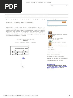 Mi Partitura Gratis para Piano en PDF My Free Sheet Music Online: Paradise ColdPlay Partitura Gratis PDF Free Sheet Music Download
