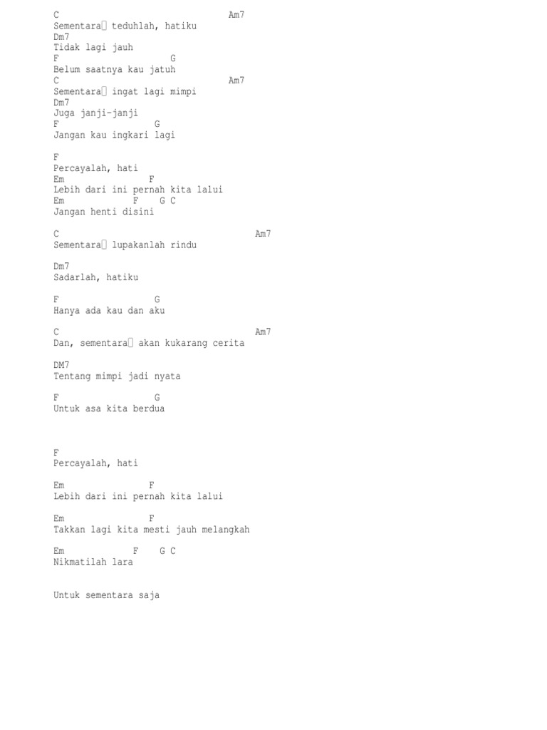Chord Gitar Lagu Sementara - Float, Lengkap dengan Lirik: Sementara Teduhlah Hatiku - Tribunnews.com Mobile